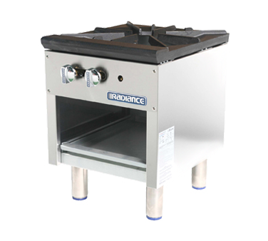 Radiance Stock Pot Range, 18″W x 21″D x 24″H, (1) 3-ring burner, manual controls, removable crumb tray, storage base, stainless steel, 6″ legs, regulator included, total 79,000 BTU